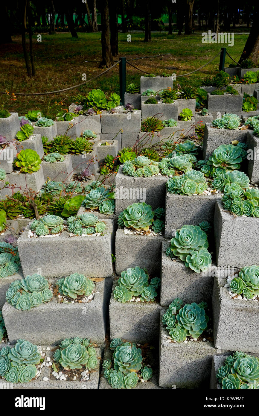 Echeveria Plants Into Cement Blocks In The Jardin Botanico