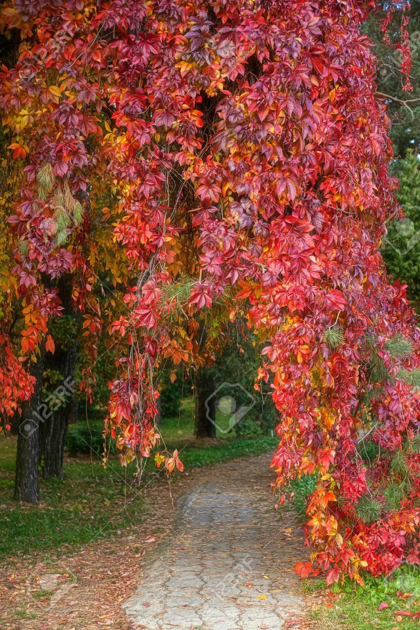 Autumncity Hojas Rojas Colores En Los Arboles En El Parque Minsk Jardin Botanico Bielorrusia Octubre
