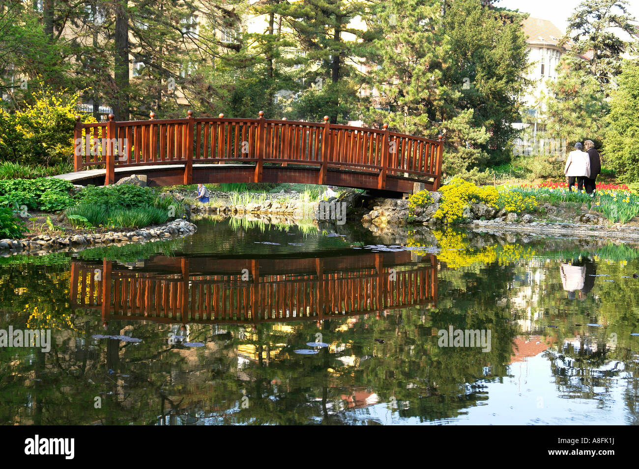 Puente Y Lago Del Jardin Botanico De Zagreb Foto De Stock