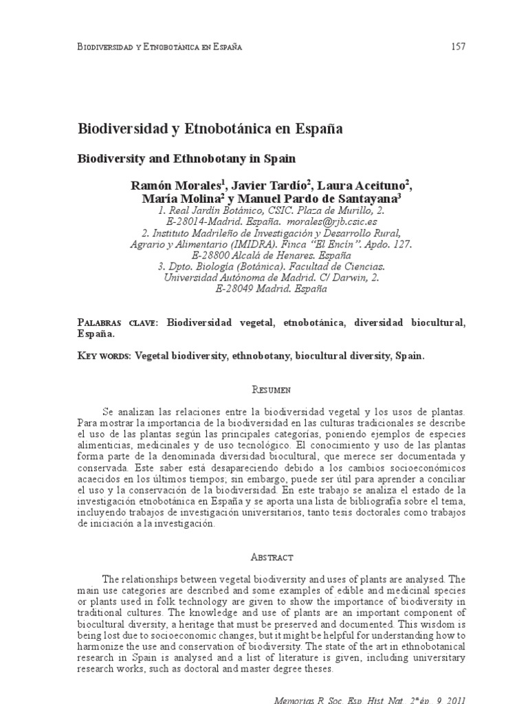 Biodiversidad Y Etnobotanica En Espana