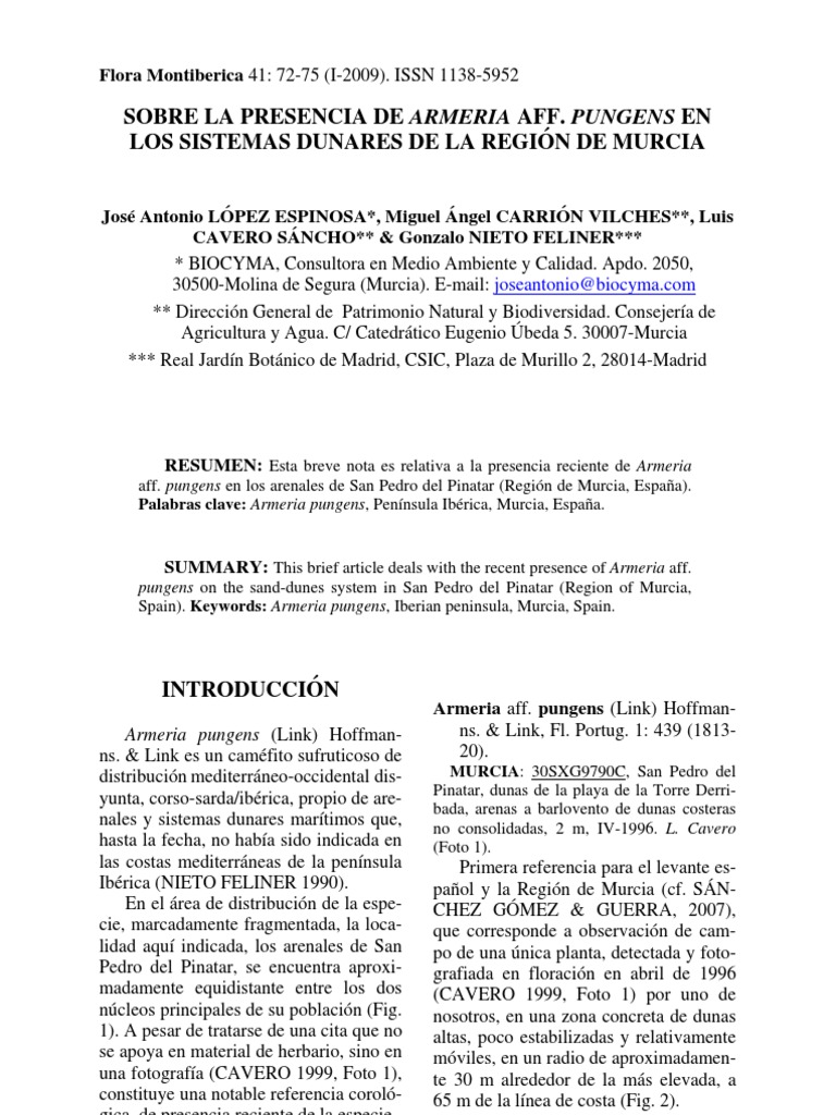 Sobre La Presencia De Armeria Aff Pungens En Los Sistemas
